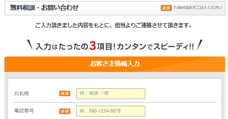「無料相談」または「簡単お見積り」のバナーをクリック