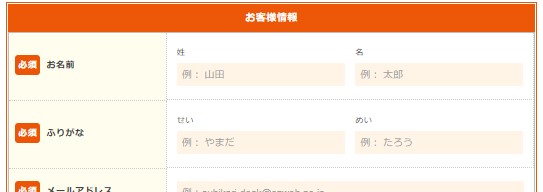 次に「お客様情報」入力欄に氏名、メールアドレスなどを入力する