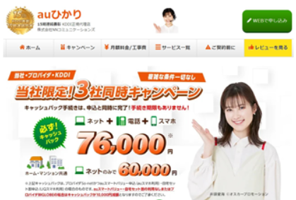 「auひかり」は他のインターネット回線よりもキャッシュバックの額が多いです。