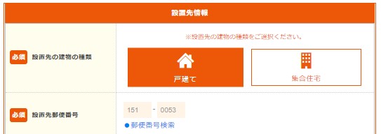 次に「設置先情報」入力欄に事務所開業予定地の情報を入力する。