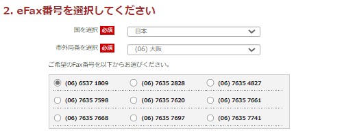 「eFax」であれば日本全国すべての(実際の拠点住所の)市外局番を取得できます。