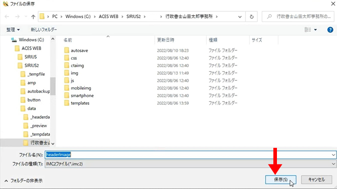 今作ったヘッダー画像をSIRIUSファイルに保存します。