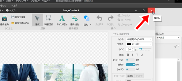 SIRIUS2ヘッダー画像編集画面「image creator」の立ち上げ