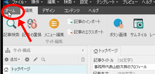 - 行政書士事務所ホームページ(SIRIUS2)にトップメニューを設置する手順