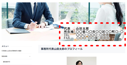ヘッダー画像のカスタマイズA行政書士事務所の基本情報を掲載する方法