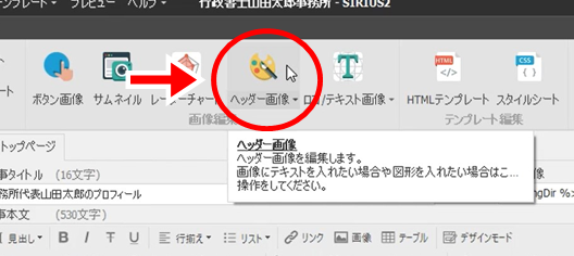 ヘッダー画像にテキストを掲載する方法は「SIRIUS2ユーザーズページ」→「SIRIUSオンラインマニュアル」→「各機能の操作方法」→「画像の編集を行う」→「ヘッダー画像を作成する」に詳しく解説されています。