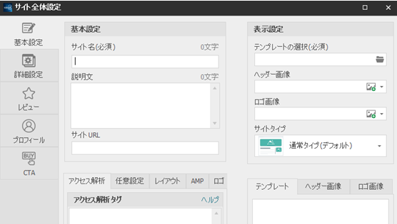 そうすると、「サイト全体設定」の入力画面がでてきます。