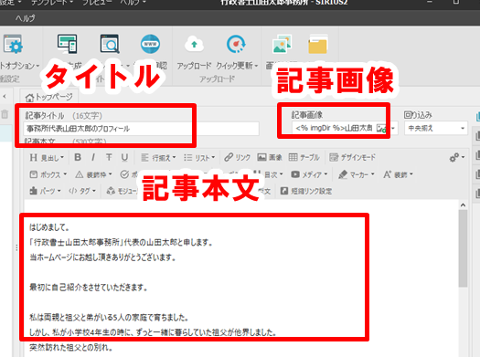 では、今から「SIRIUS2」を使って、あなたの行政書士事務所ホームページを作成していきます。