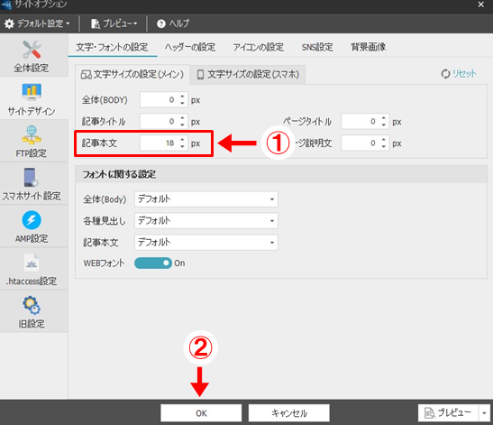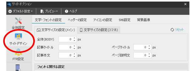 SIRIUS2サイトで規定の文字サイズを変える手順