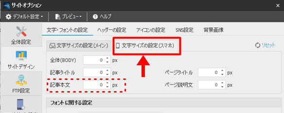 そして、「文字サイズの設定(スマホ)」をクリックします。
