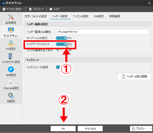 SIRIUS2サイトのヘッダー画像にトップページへのリンクを貼る手順