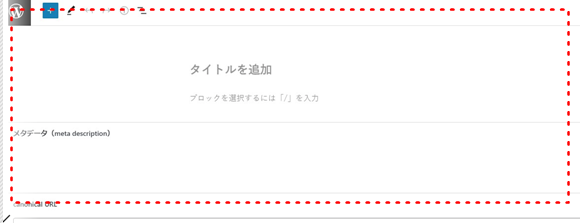 *「ブロックを選択するには「/」を入力」というブロックタイトルは今後変更される可能性があります。変更されたとしても、とにかくタイトル入力欄の下のブロックに記事を入力すればよいです。