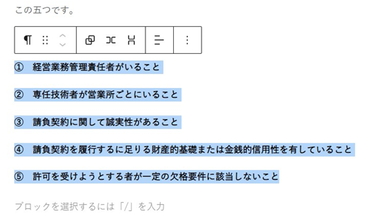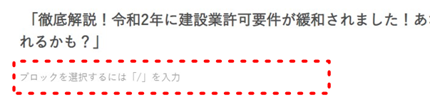 次に、タイトル入力欄の下の「ブロックを選択するには「/」を入力」に記事をコピペで入力します。
