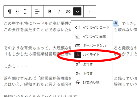 色を付けたい箇所を選択して「さらにブロックツールを表示」をクリック