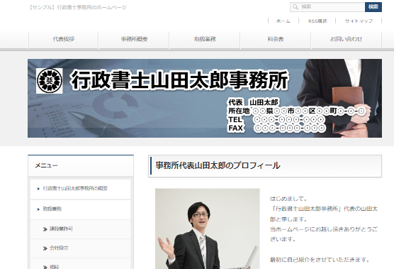 プレビュー画面で「行政書士○○○○事務所」のテキストリンクをクリックしてみましょう。