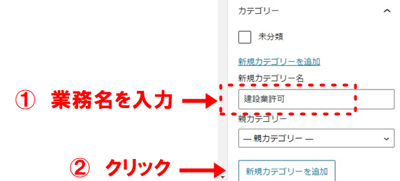 新規カテゴリー名入力欄に「建設業許可」と入力し「新規カテゴリーを追加」をクリック