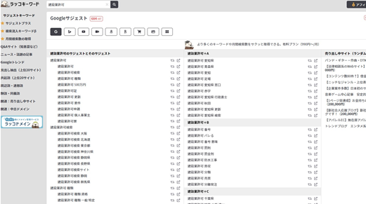 ラッコキーワードの検索窓に「建設業許可」と入れて検索します。