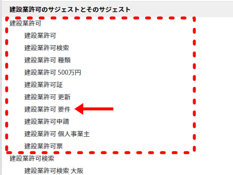 例えば、「建設業許可 要件」のキーワードを3つに増やします。
