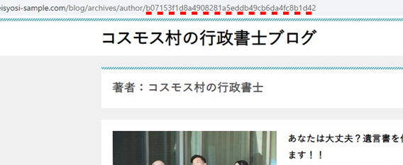 例えば、サンプルブログのURLは「https://gyouseisyosi-sample.com/blog/」なので、